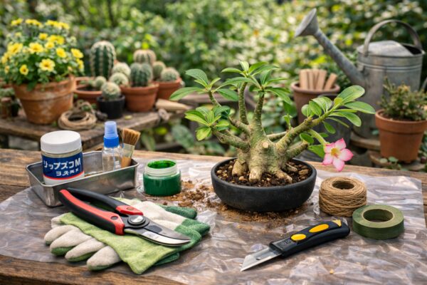 アデニウムの剪定において失敗を防ぐ最大のポイントは、切る前の準備段階にあります。剪定という行為そのものよりも、使用する道具の状態や作業環境が、切り口の回復速度やその後の生育に強く影響するためです。準備不足のまま剪定を行うと、切り口の治癒不良や病原菌侵入といったトラブルを招きやすくなります。