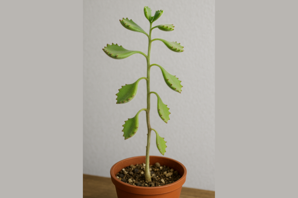 日当たり不足の環境が続くと、少しでも光を受け取ろうとして茎が上へ、もしくは横へと無理に伸びようとします。その結果、茎が細く長くなり、葉の付き方もまばらになって、ひょろひょろした姿になってしまいます。