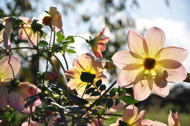 春の再定植では、株が大きく育つことを見越して、倒れにくい位置関係と支柱の準備を行う。皇帝ダリアは成長期に2〜4 mに達することがあるため、風が抜けやすい場所に植えると倒伏の危険が増す。建物や生垣を背にした配置、または太めの支柱を生育初期から株元に設置する方法が有効である。
