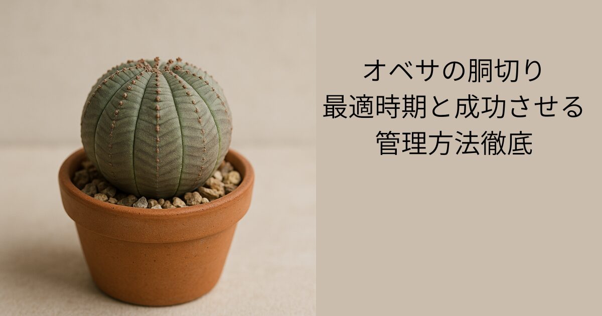 オベサを胴切りする際は、植物が活動期に入り、光合成速度、細胞分裂、根圧などが安定して働く季節を選ぶことが重要となる。一般にオベサは春から初夏にかけて生育が顕著になるため、気温と日照が安定し始めるこの時期が胴切り適期となる。植物は代謝活動が低下している時期に組織を損傷すると、細胞修復と新しい根の形成が遅れるため、休眠期・高温ストレス期・低温期は避けられることが多い。