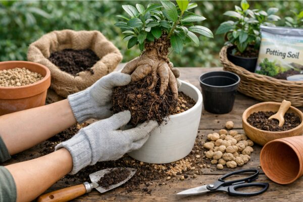 基本的には観葉植物用の培養土が使いやすく、初心者にも向いています。あらかじめバランスよく配合されているため、過度に難しく考えず植え替えしやすい点が利点です。さらに水はけを高めたいなら、赤玉土や軽石、パーライトなどを少し加えて調整すると、根が呼吸しやすい環境を作りやすくなります。