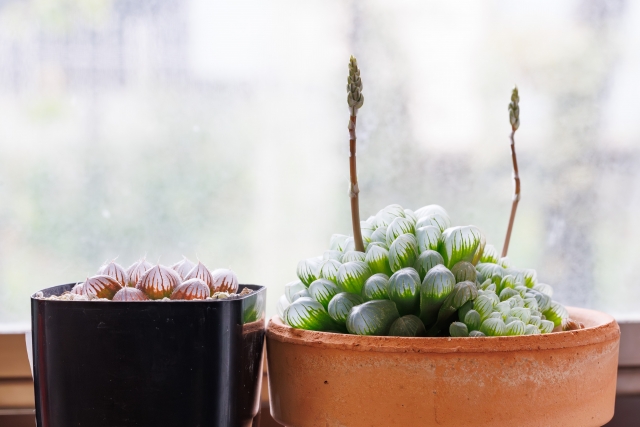 2つ目は、水の与えすぎです。多肉植物であるハオルチアは、葉に水を蓄える性質を持つため、頻繁な水やりは不要です。常に用土が湿った状態だと、根が弱りやすいだけでなく、過剰な水分で葉がふくらみ、姿がだらしなく崩れる原因になります。