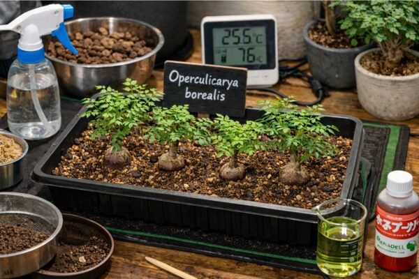 オペルクリカリア ボレアリスの種まきにおける用土設計は、発芽までの短期的な視点と、発芽後の根の伸長を見据えた中期的な視点を両立させる必要があります。実生初期は根が浅く、わずかな環境変化の影響を受けやすいため、用土の性質が結果に直結しやすい段階です。