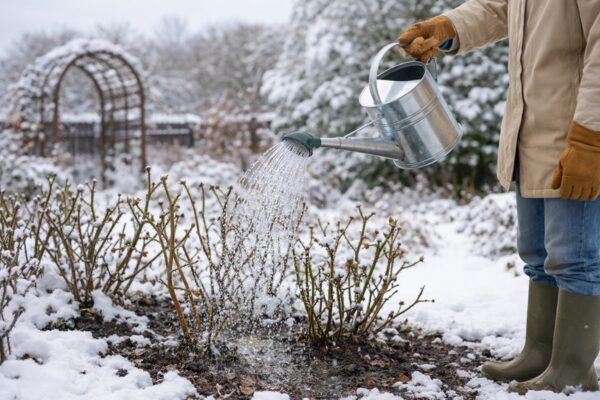 地植えは冬の降雨で足りることも多いですが、雨が少なく乾燥が続く地域や、植え付けたばかりの株では補水が必要になる場合があります。乾燥した晴天が続いたあとに土がかなり乾いているなら、暖かい時間帯を待つよりも、朝のうちに株元へ穏やかに与えるほうが管理しやすいでしょう。