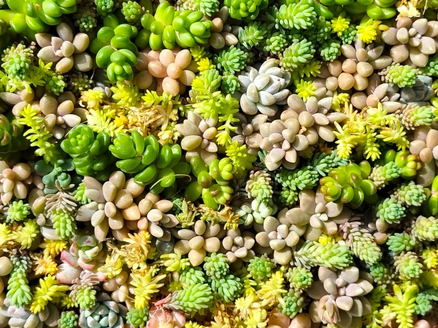 • 元気なセダムの株(ゴールデンカーペット、メキシコマンネングサなど増えやすい品種が扱いやすい)