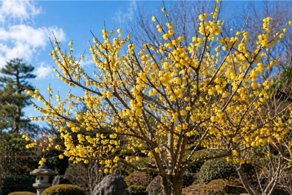 蝋梅には注意点がある一方で、冬の庭を彩る魅力も豊富にあります。花の少ない12月から2月ごろに、黄色く透けるような花を咲かせるため、寒い季節の庭に明るさを添えてくれます。
